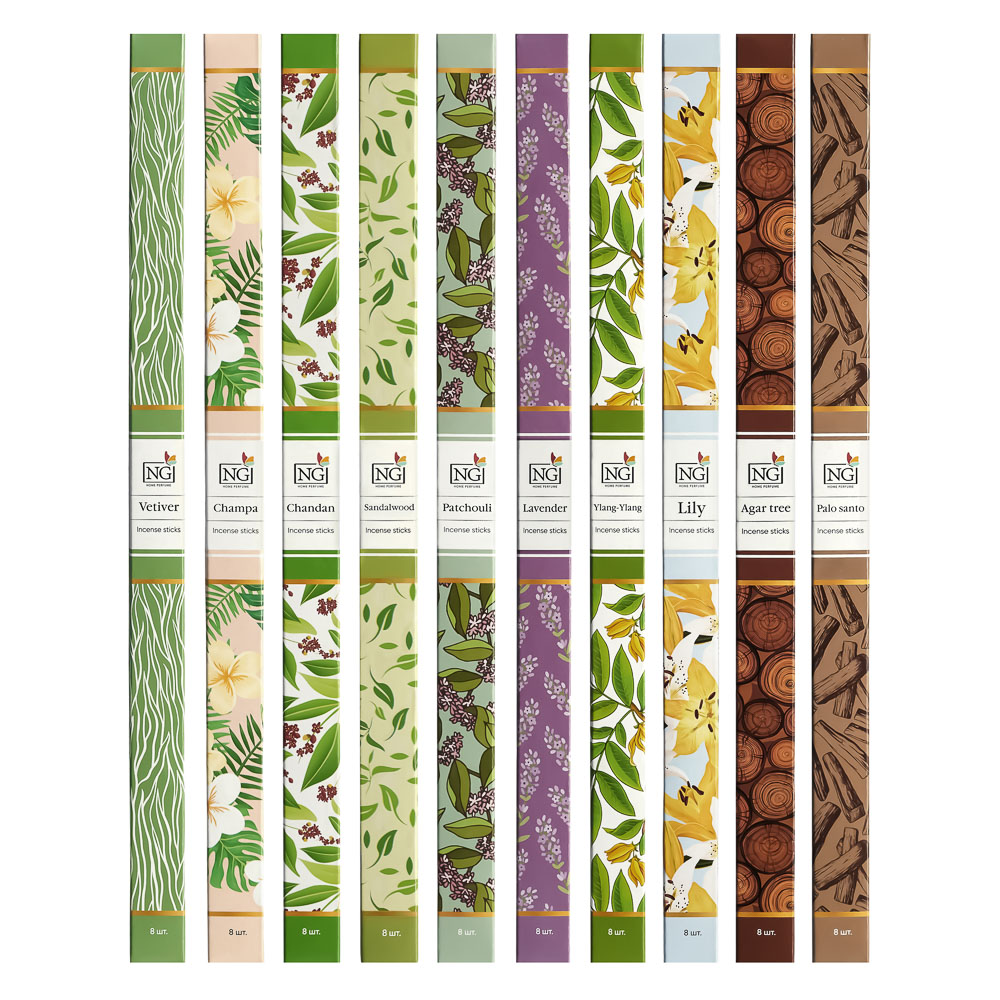 NEW GALAXY Аромапалочки 8 шт., Ветив,Иланг,Лилия,Пачул,Сандал,Чампа,Чандан,П.санто,Агар,Лаванда