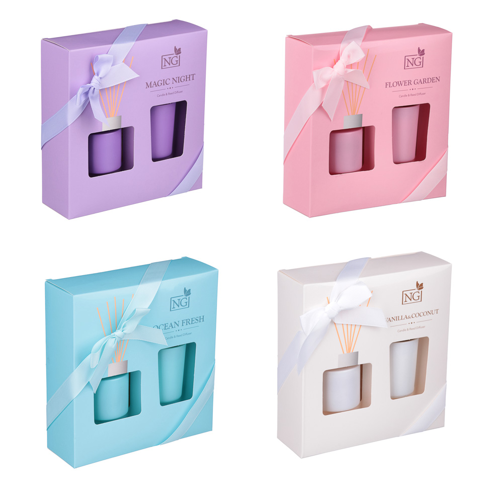 NEW GALAXY Набор ароматизатор-диффузор и свеча, ваниль/кокос,океан,цветочн,,магич. ночь 40мл, 50г