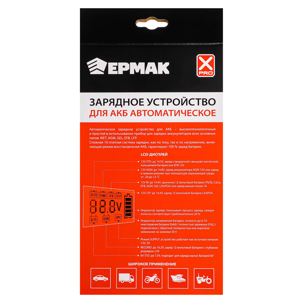 ЕРМАК Автоматическое зарядное устройство для АКБ, 4А, цифровой дисплей