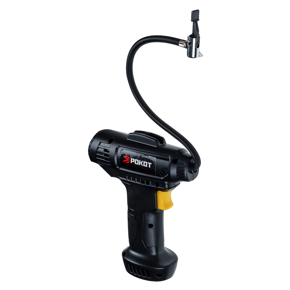 Беспроводной автомобильный компрессор РОКОТ мощностью 120 Вт – это ультракомпактный аккумуляторный автономный прибор для подкачки шин. Имеет высокую производительность – 35 л/мин. Оснащен встроенным литий-ионным аккумулятором емкостью 2 А*ч, которой хватает на 20-25 минут непрерывной работы. Дополнительные преимущества: аналоговый дисплей и LED-подсветка, что позволяет осуществлять накачку в темное время суток. Эргономичная рукоять и легкий вес устройства обеспечивает комфорт во время использования. Компрессор занимает минимум места в багажнике. Комплектация включает шнур USB, шланг и 3 переходника. Время полного заряда АКБ – 4 часа.
