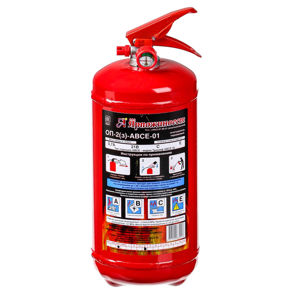 Огнетушитель порошковый ОП-2(з) АВСЕ, алюминий, масса заряда 2 кг