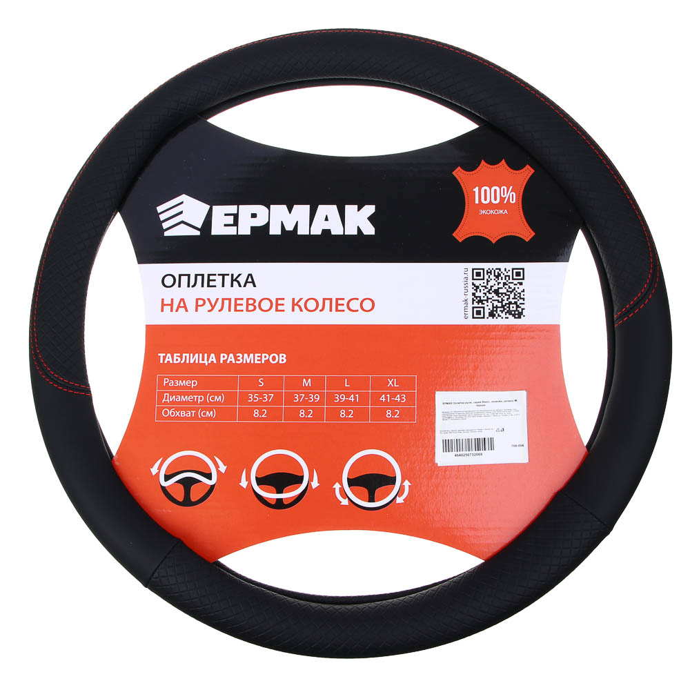ЕРМАК Оплетка руля, серия Basic, экокожа, размер M, черная