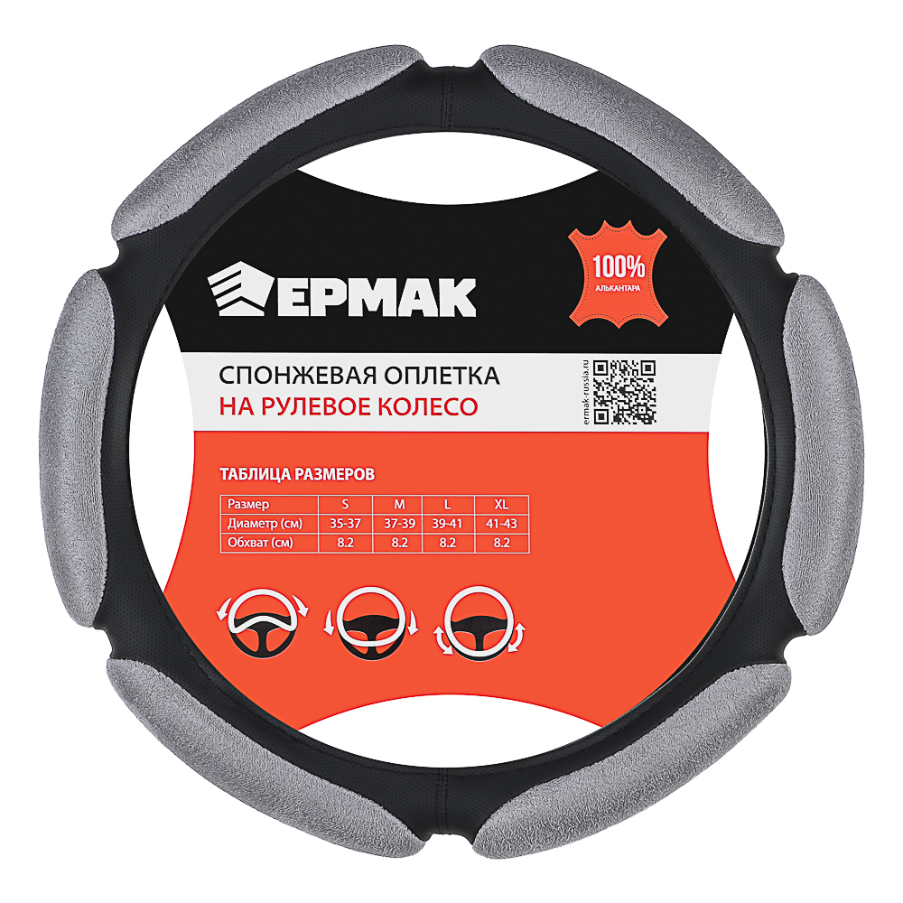 Ермак Оплетка руля, спонж, 6 подушек, серый, размер S