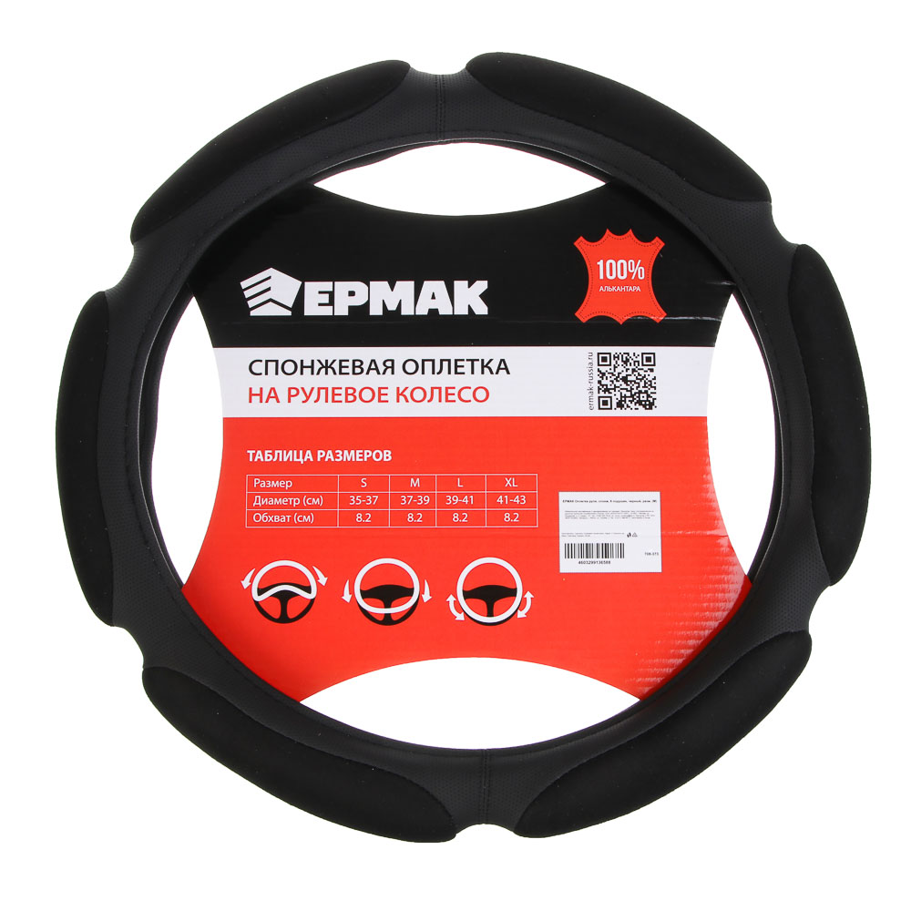 ЕРМАК Оплетка руля, спонж, 6 подушек, черный, разм. (M)