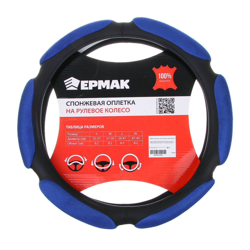 ЕРМАК Оплетка руля, спонж, 6 подушек, синий, разм. (M)