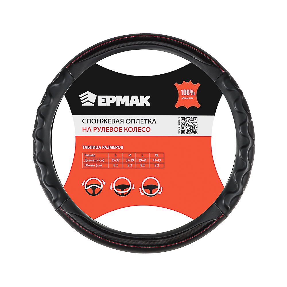 ЕРМАК Оплетка руля, экокожа, со вставками "карбон", с эргоном. захватом, черный, разм. (М)