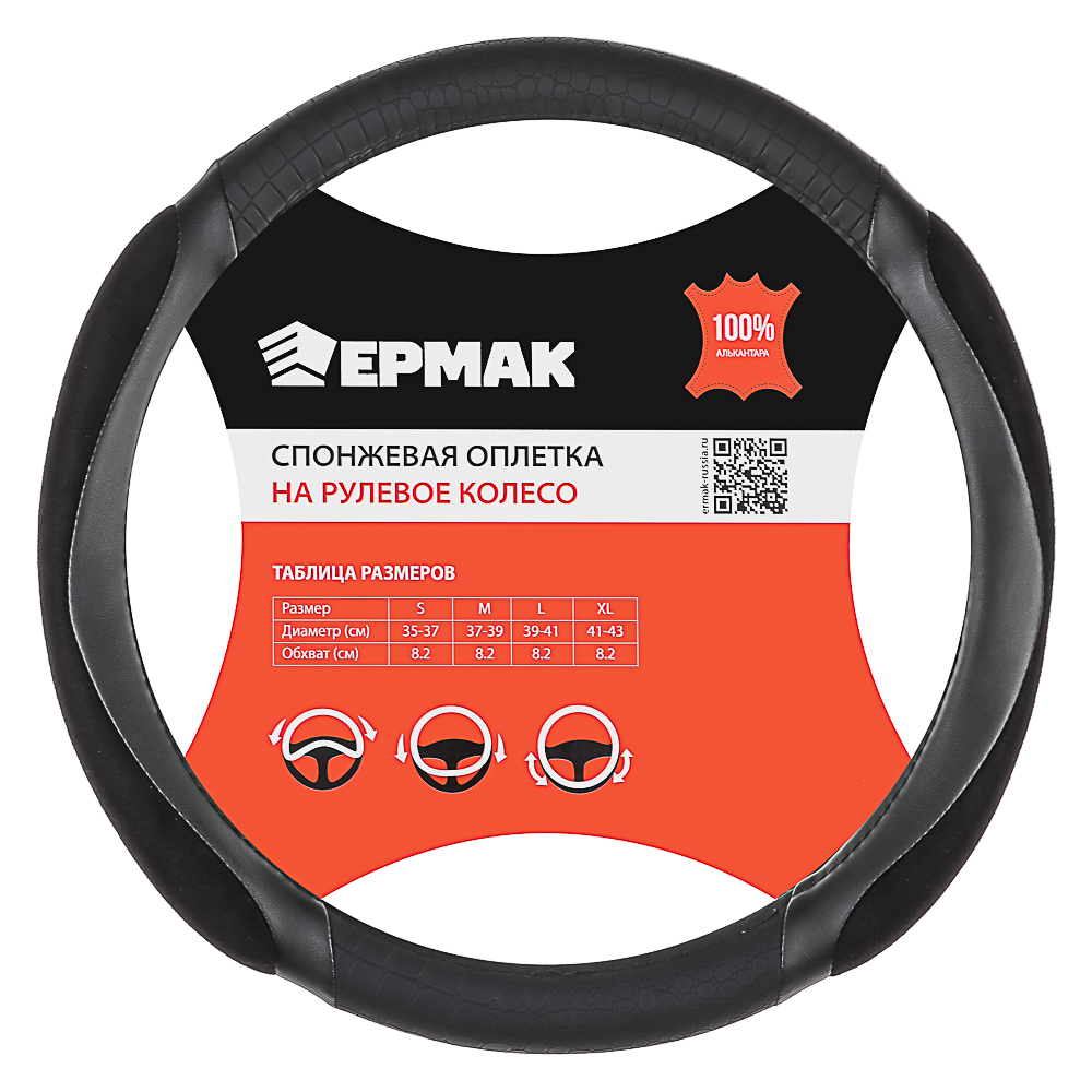 ЕРМАК Оплетка руля, спонж, с захватом руля, черный, разм. (M)
