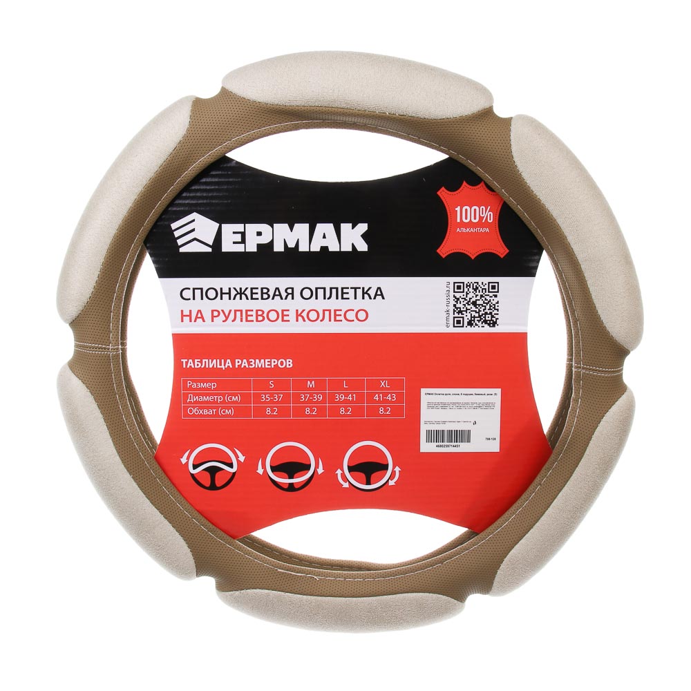ЕРМАК Оплетка руля, спонж, 6 подушек, бежевый, разм. (S)