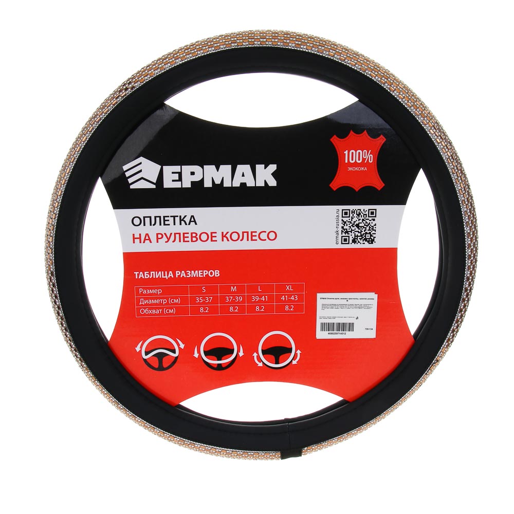 ЕРМАК Оплетка руля, экокожа, кристаллы, золотой, размер M