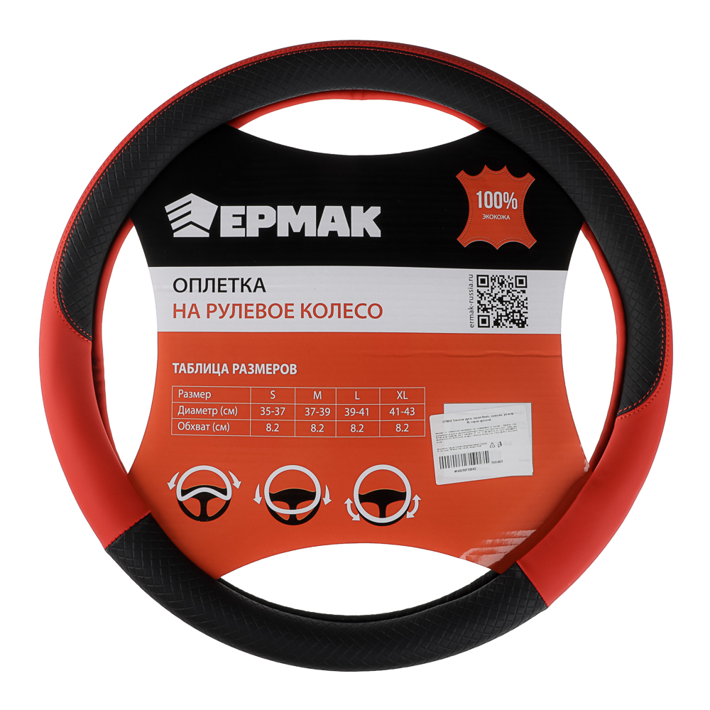 ЕРМАК Оплетка руля, серия Basic, экокожа, размер M, черно-красная