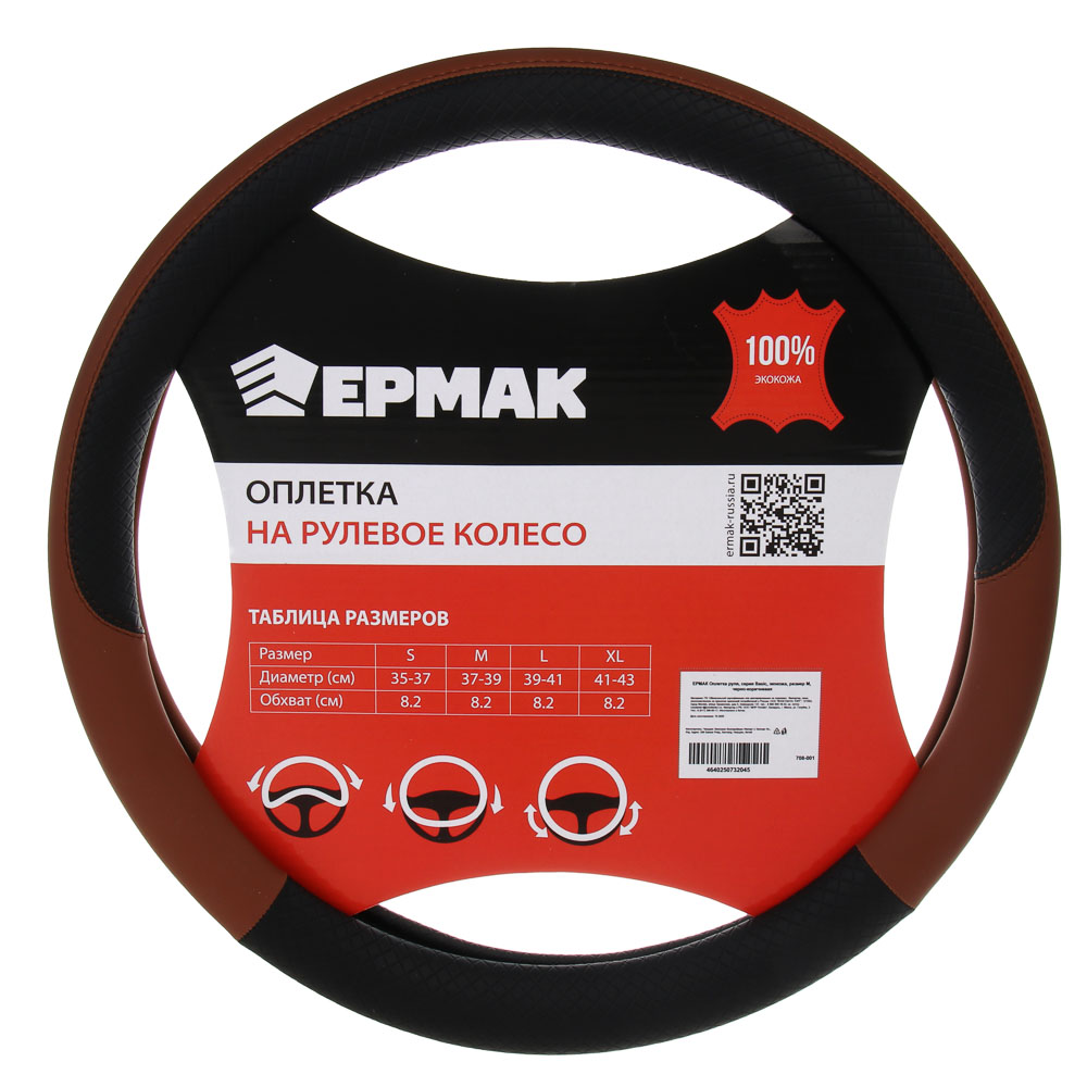 ЕРМАК Оплетка руля, серия Basic, экокожа, размер M, черно-коричневая