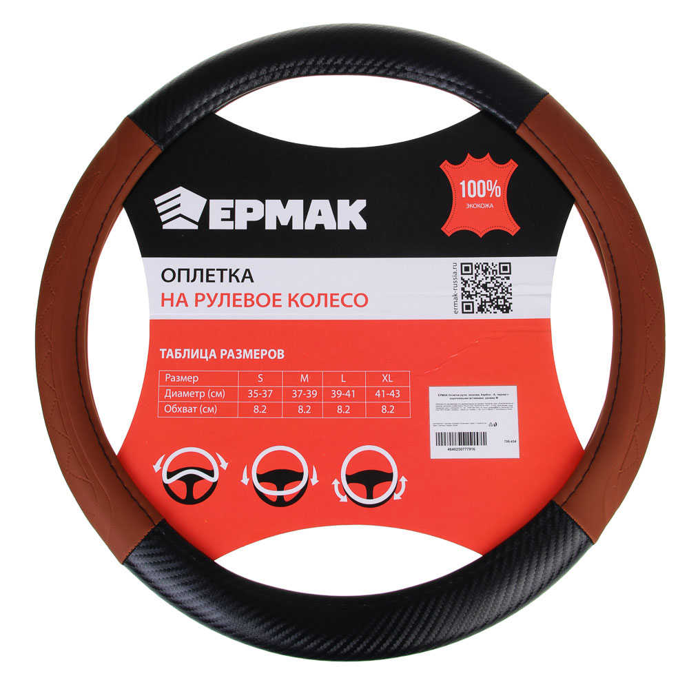 ЕРМАК Оплетка руля, экокожа, Карбон - А, черная с коричневыми вставками, размер М