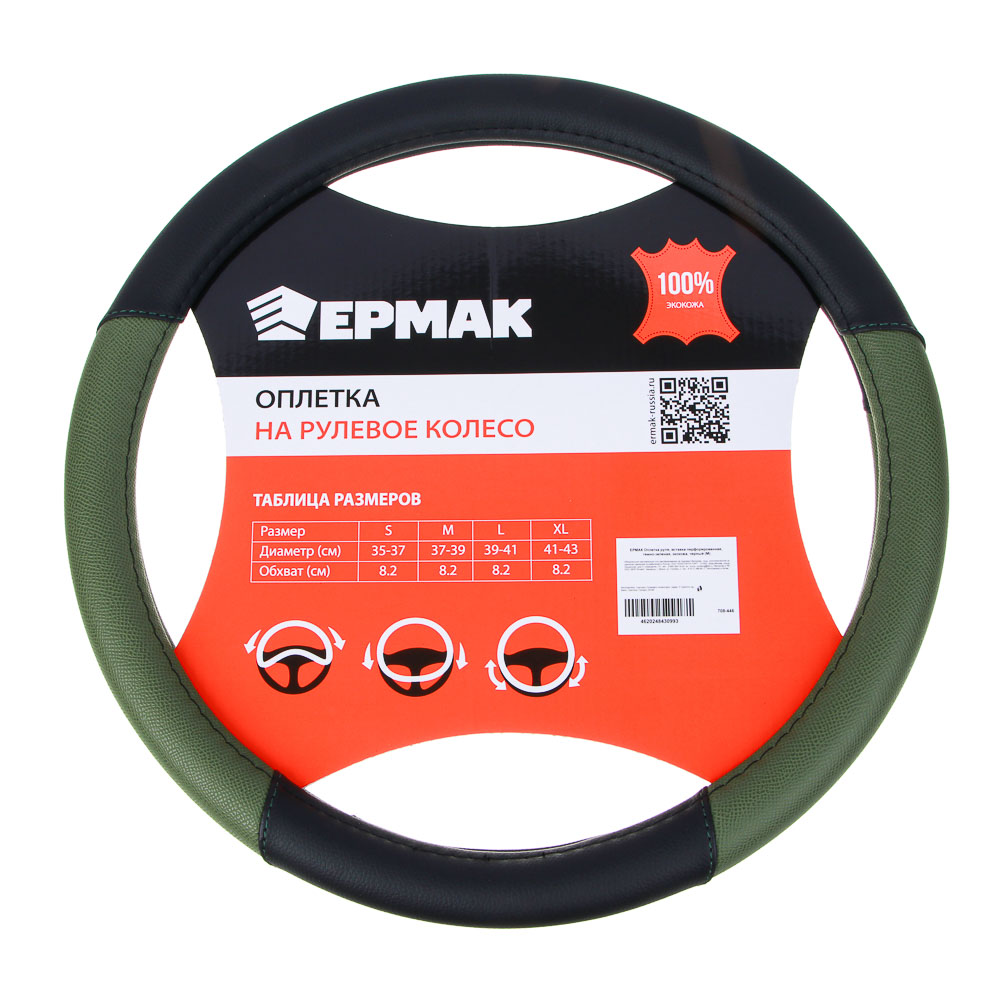 ЕРМАК Оплетка руля, вставка перфорированная, темно-зеленая, экокожа, черный (М)