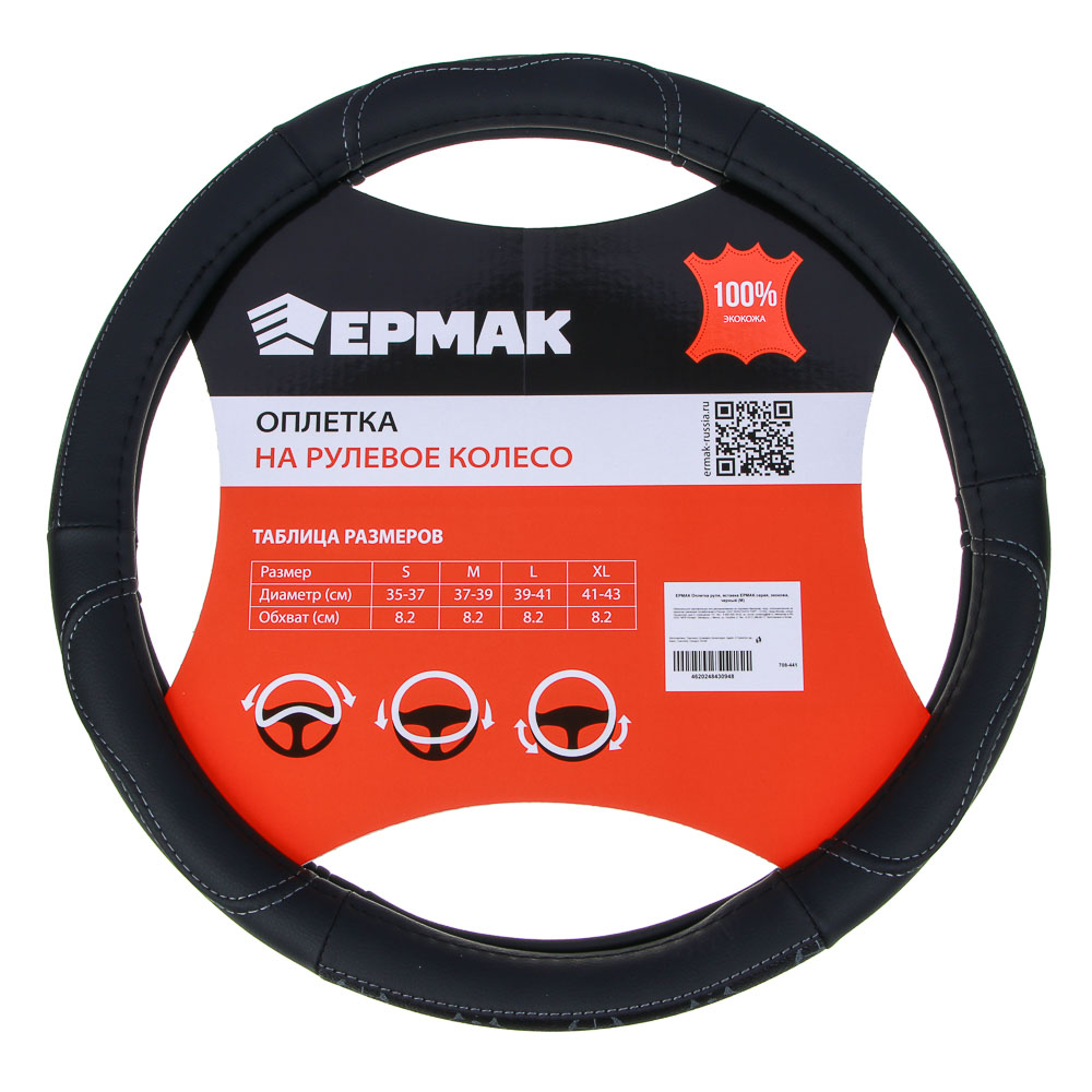 ЕРМАК Оплетка руля, вставка ЕРМАК серая, экокожа, черный (М)