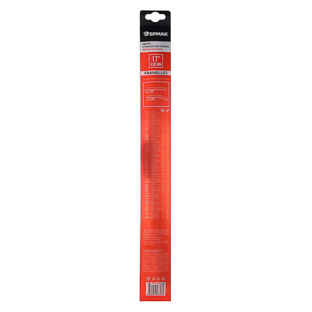 ЕРМАК Щетка стеклоочистителя бескаркасная 430мм/17''