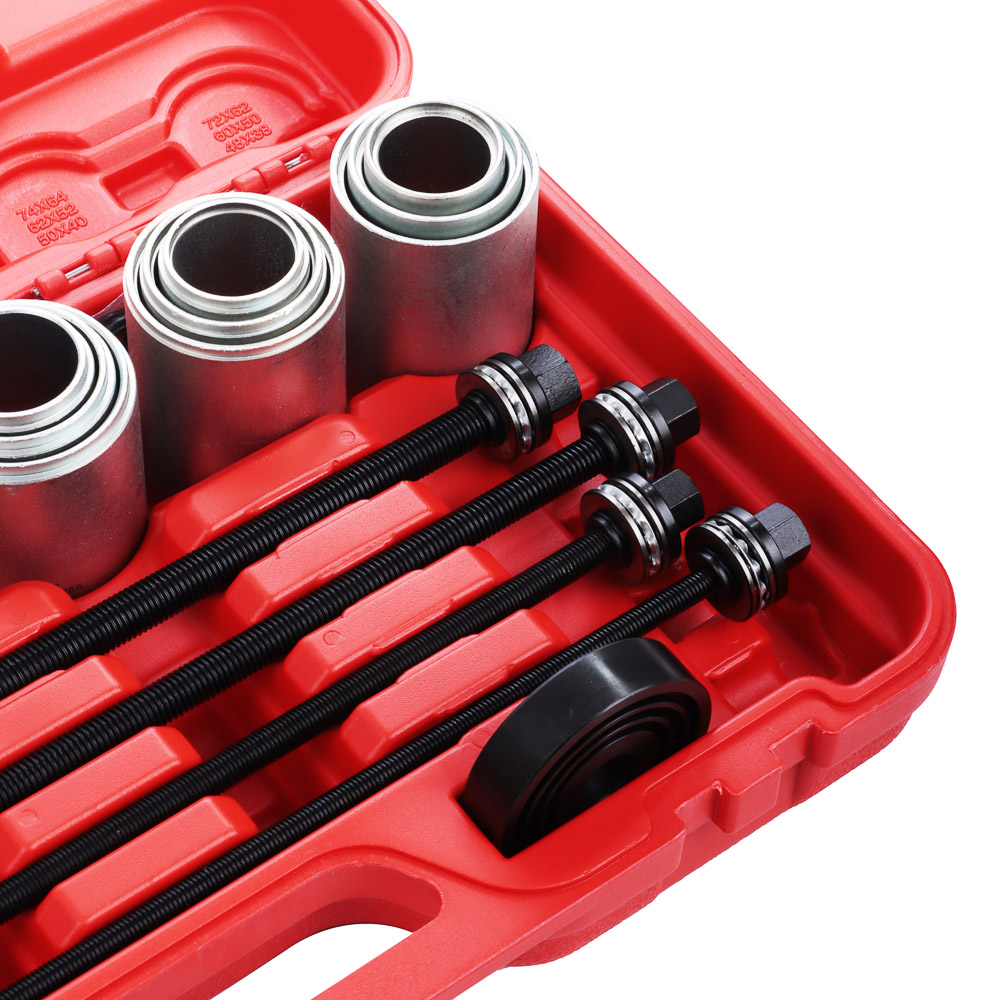 Набор инструментов для демонтажа/монтажа сайлентблоков ЕРМАК используется для внешних и внутренних обойм подшипников и сайлентблоков. Необходим для обслуживания и ремонта автомобилей и других транспортных средств. Комплект состоит из 26 предметов и включает самые популярные размеры. Все элементы выполнены из высококачественной стали с высоким запасом прочности. Предусмотрен удобный жесткий пластиковый кейс с ручкой для хранения и транспортировки.