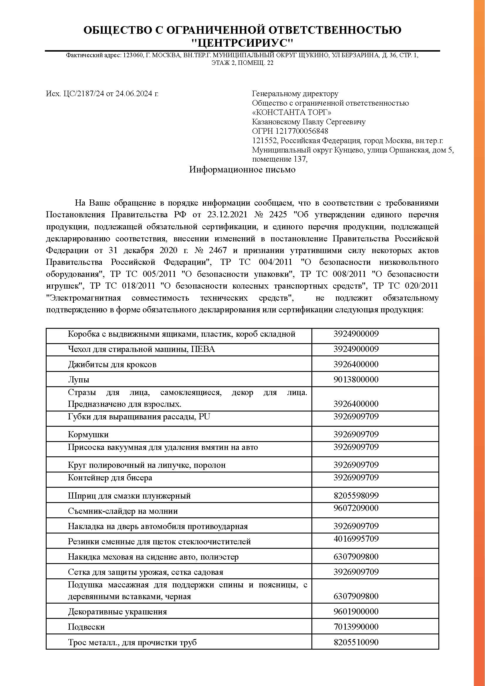 Тип товара