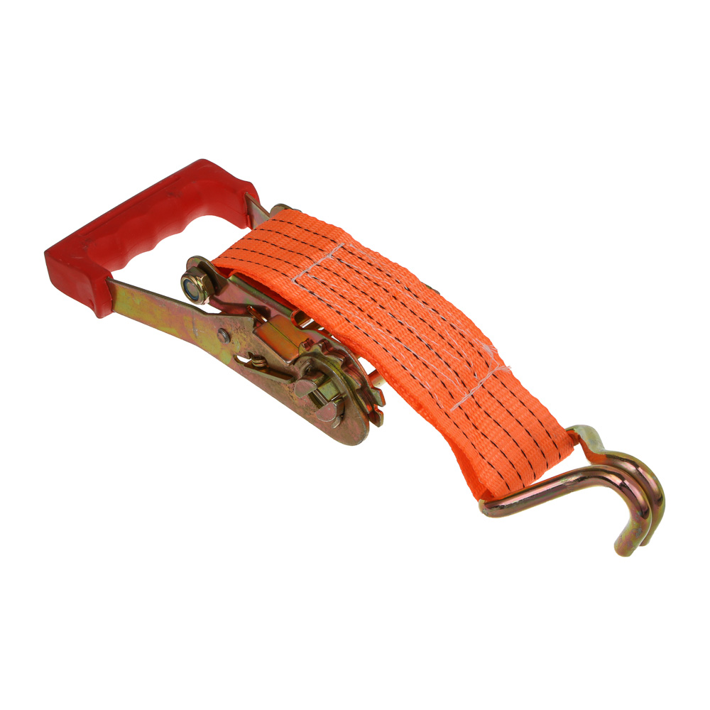 Ремень крепежный от бренда NEW GALAXY для стяжки и крепления груза с храповым механизмом российского производителя предназначен для быстрого и надежного крепления различных грузов, перевозимых на всех видах транспорта. Используется для перевозки и транспортировки багажа. Для удобства крепежа стяжка оснащена двойным крюком. Усиленный механизм натяжения с фиксатором (храповик) предотвращает ослабление ленты. Максимальная стяжная нагрузка данного ремня для крепления груза – 2000 кг, максимальное усилие удержания – 4000 кг. Длина 10 м. Устойчив к истиранию, не выгорает на солнце.