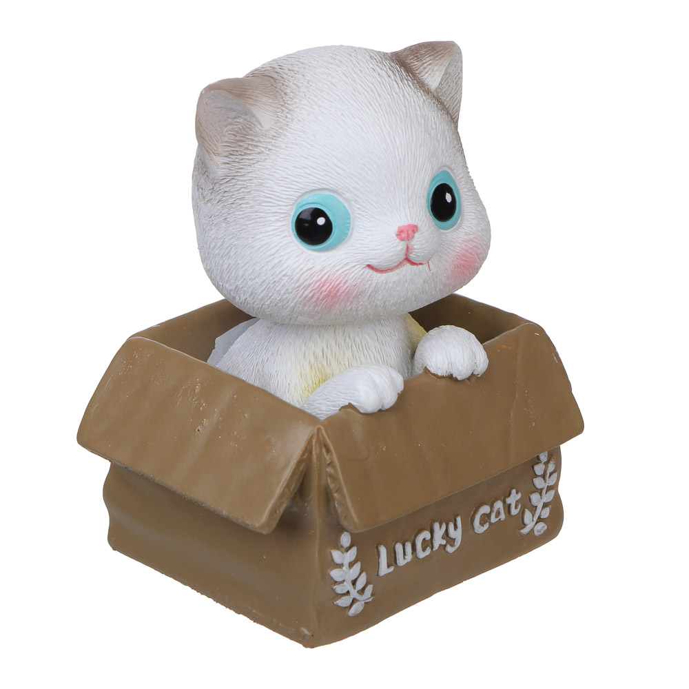 Счастливый кот на панель авто, качающий головой от ЕРМАК – это забавный милый и выразительный аксессуар для украшения автомобильного салона. Фигурка в виде милого котенка в коробке будет дарить улыбки и отличное настроение перед каждой поездкой. Игрушка качает головой во время движения транспортного средства. Не загораживает обзор для водителя. Прекрасный вариант подарка для автоледи. Сувенир также подойдет для декора дома и офиса.
