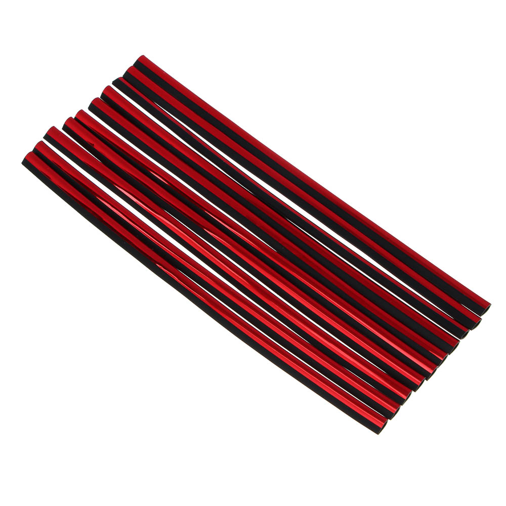 Набор из 10 красных молдингов для декора автомобиля. Изготовлены из резины, они легко устанавливаются и обеспечивают стильный внешний вид вашему автомобилю. Эти молдинги идеально подходят для декора и защиты различных частей автомобиля, таких как двери, окна, багажник и крыша.