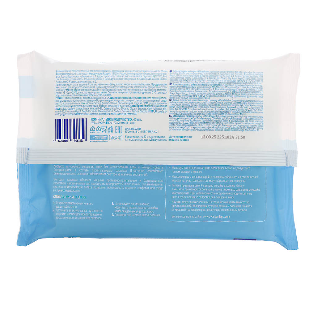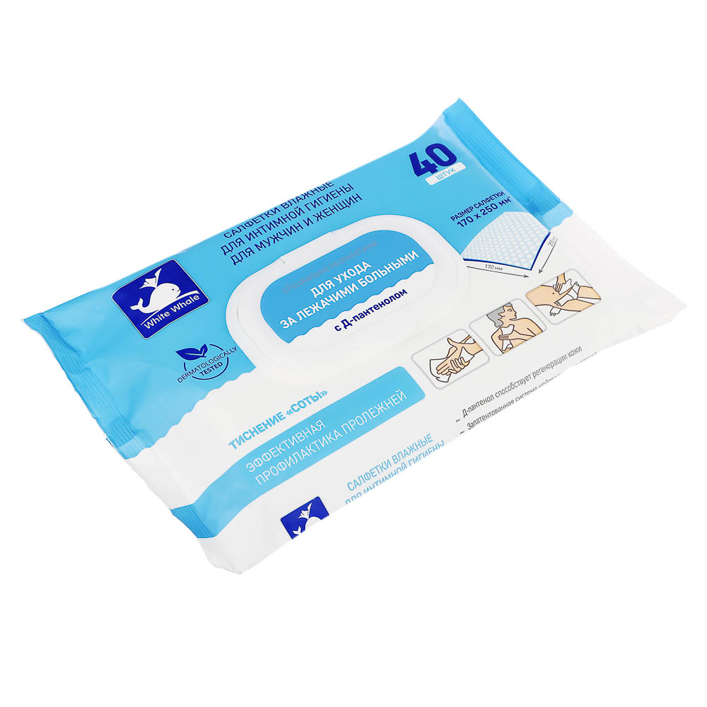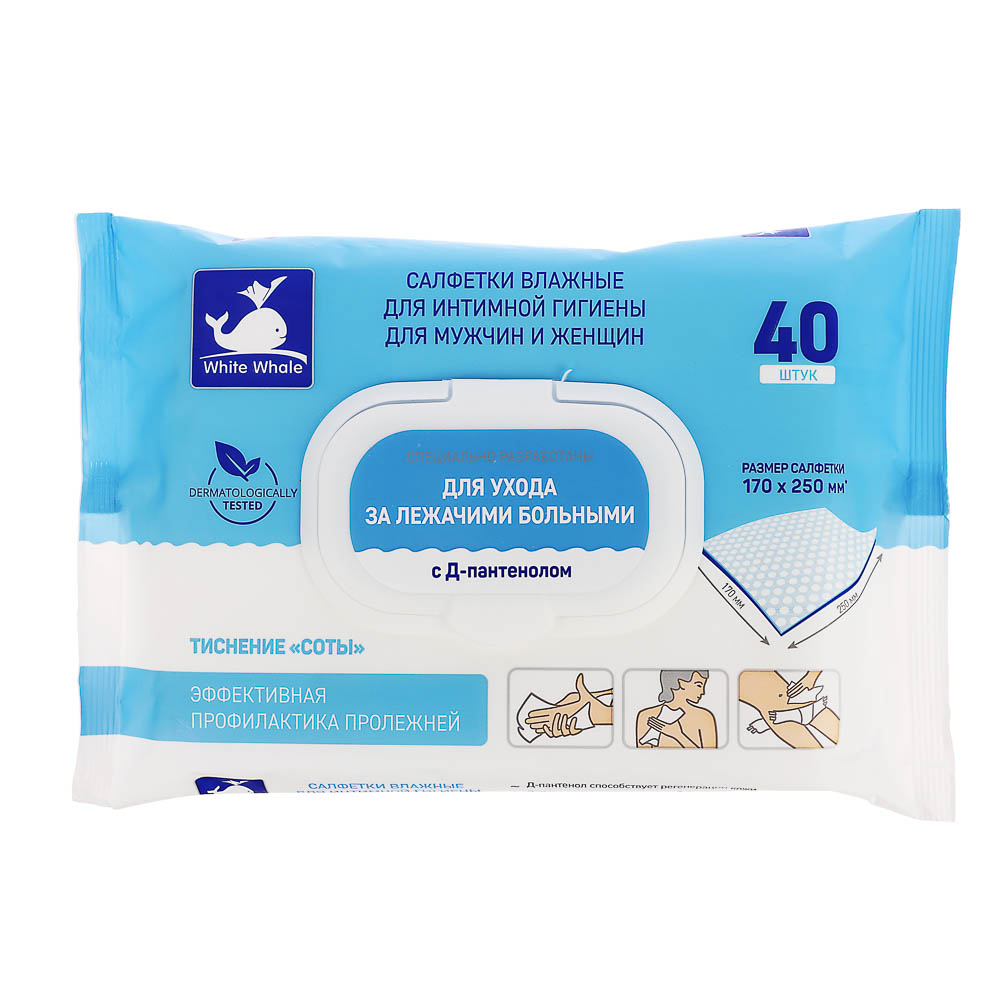 Салфетки влажные для ухода за лежачими больными White Whale, 40шт