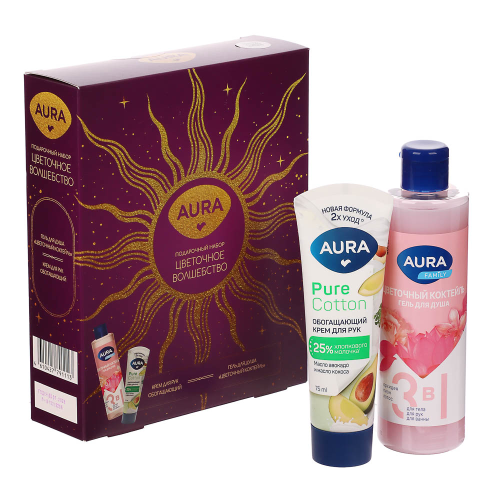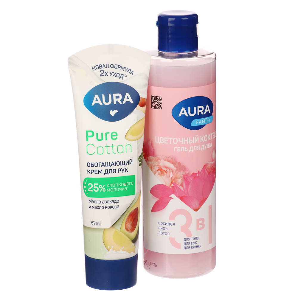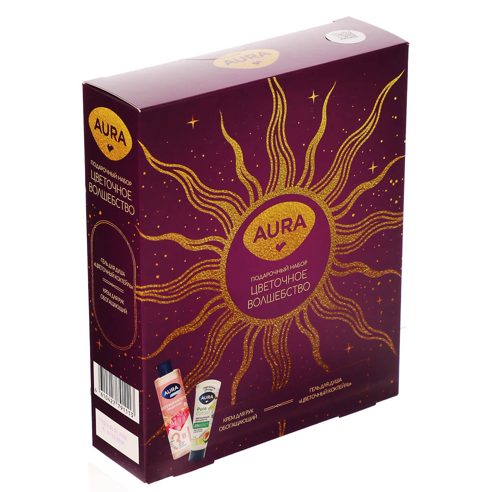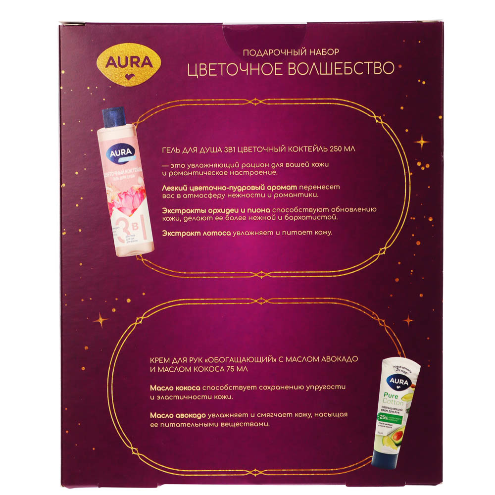 Подарочный набор женский AURA: Гель д/душа Цветочный коктейль 250мл+Крем д/рук Обогащающий, 75мл