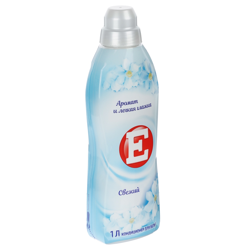 Кондиционер для белья E Свежий 1000 мл бережно и деликатно ухаживает за любой одеждой. Благодаря современной формуле из катионных ПАВ и глицерина кондиционер обладает эффективными преимуществами: - Благодаря кондиционеру белье будет мягким и приятным на ощупь. - Средство E дарит белью свежесть и приятный аромат, который сохраняется длительное время. - Кондиционер E облегчает глажку и обладает антистатическим эффектом.Почему современные хозяйки отдают предпочтение средству для белья E? - Кондиционер универсально подходит для ополаскивания всех видов тканей.- Средство для ополаскивания белья можно использовать при машинной и ручной стирке.- Все рекомендации по эффективному использованию кондиционера можно прочитать на упаковке. - Кондиционером можно ополаскивать детские вещи.