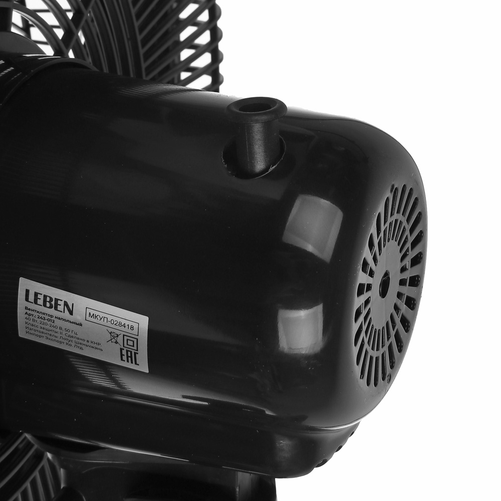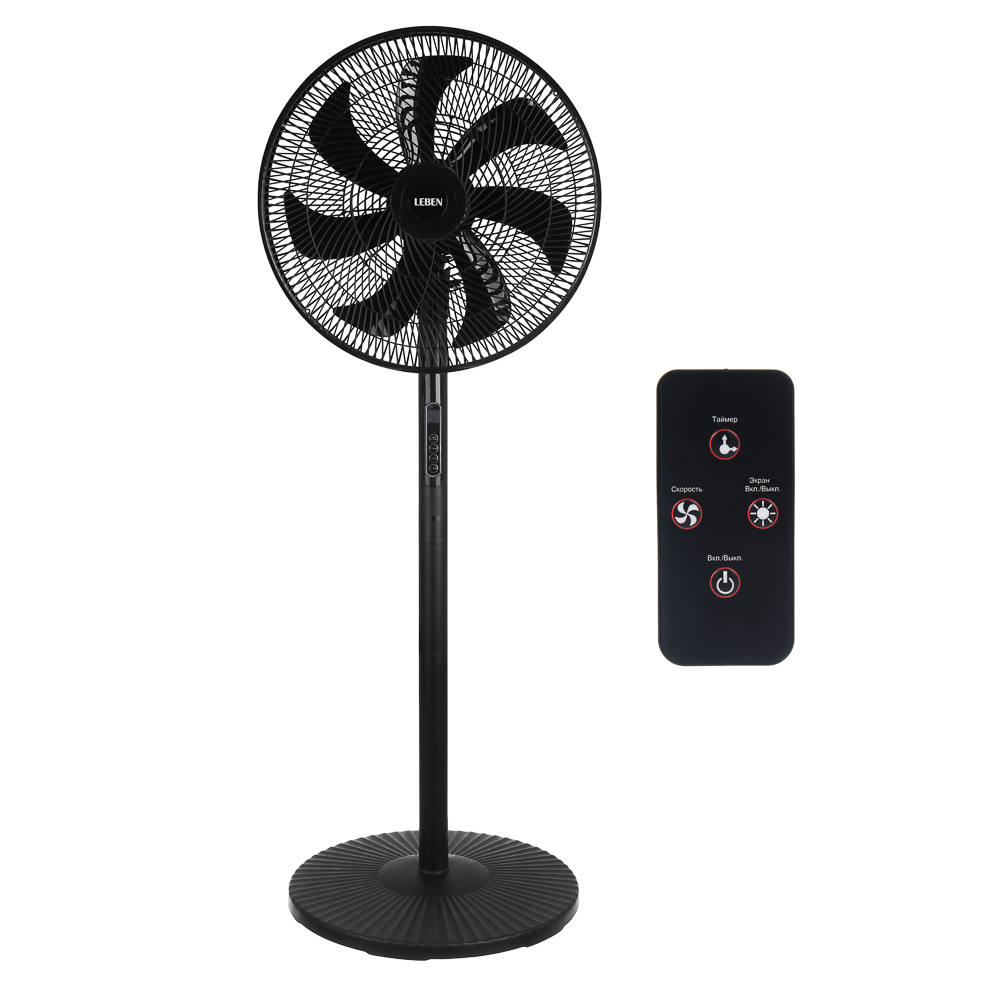 Вентилятор напольный тм LEBEN 40Вт, 8 скоростей, диаметр 41см, 220в, таймер, пульт ДУ, черный