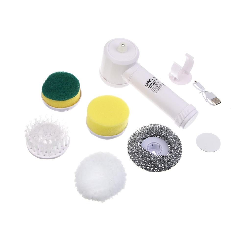 LEBEN Электрическая щетка для уборки, 5 насадок, 500 мАч, пластик, белый