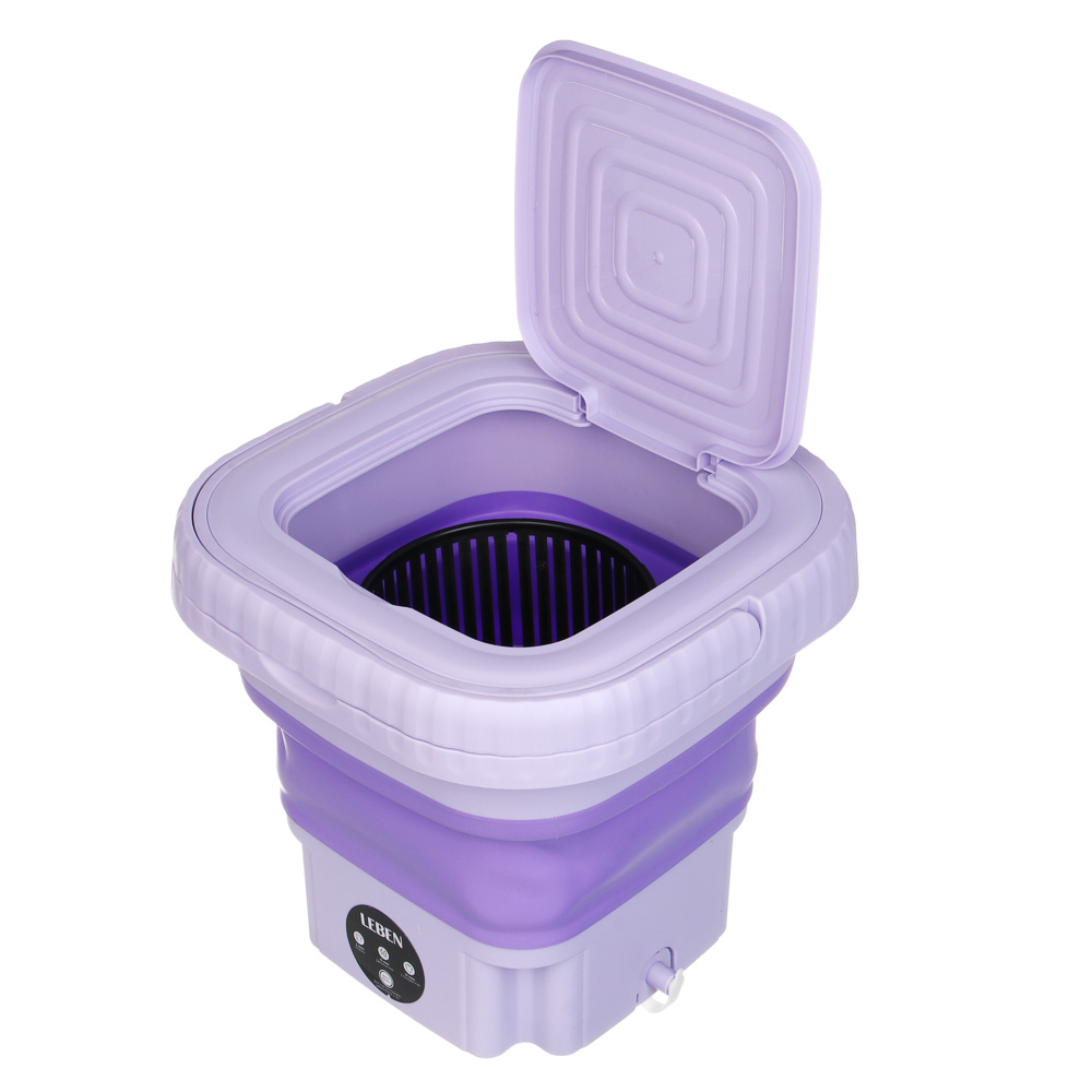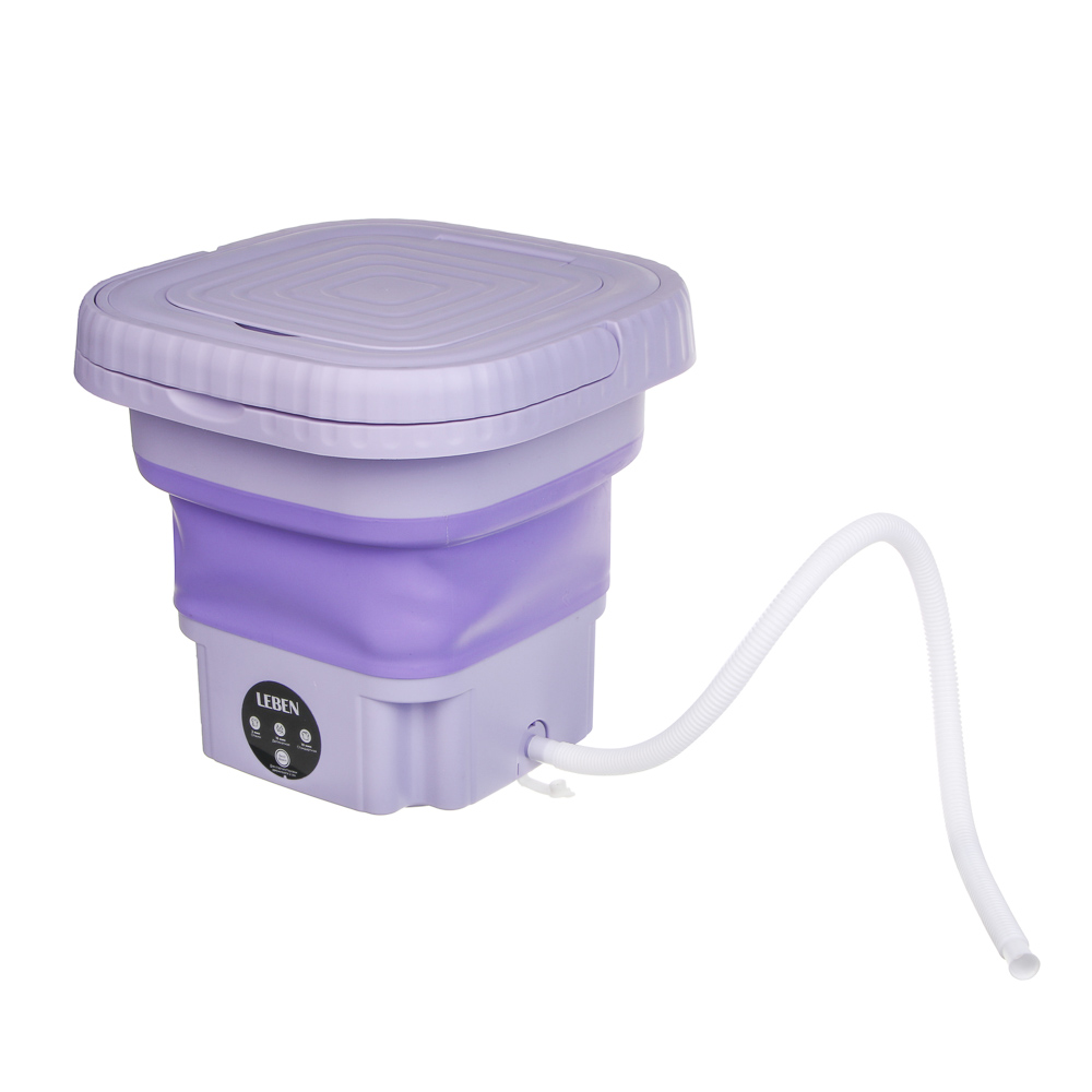 Портативная складная стиральная машина LEBEN объёмом 9 л станет незаменимым помощником для дома и путешествий. Она компактно складывается, экономя место, а сочетание силикона, пластика и металла делает её лёгкой, прочной и удобной в использовании. Машина идеально подходит для стирки небольших вещей, обеспечивая комфорт и практичность даже в ограниченном пространстве.