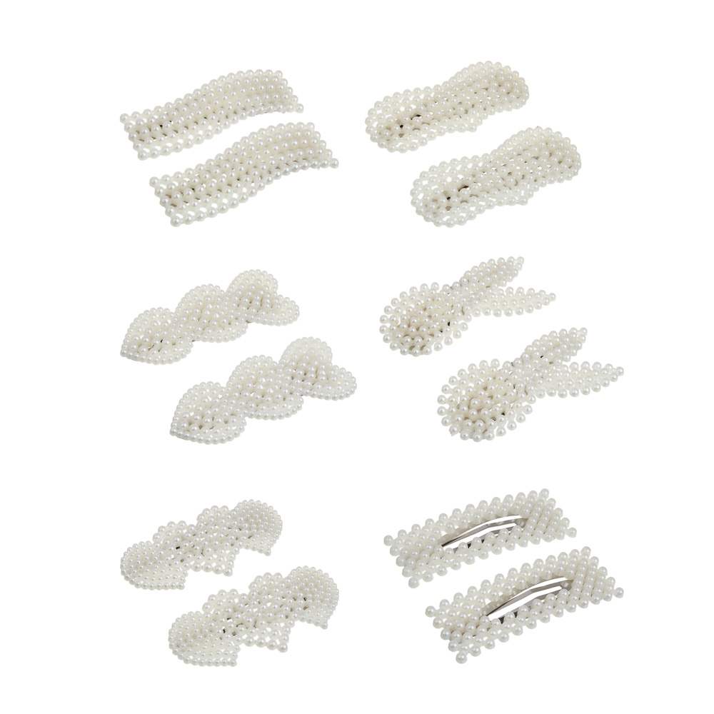 Зажим для волос со стразами 2шт, тм ЮНИLOOK, 6-8см, металл, искусствен. жемчуг, 6 дизайнов, #14