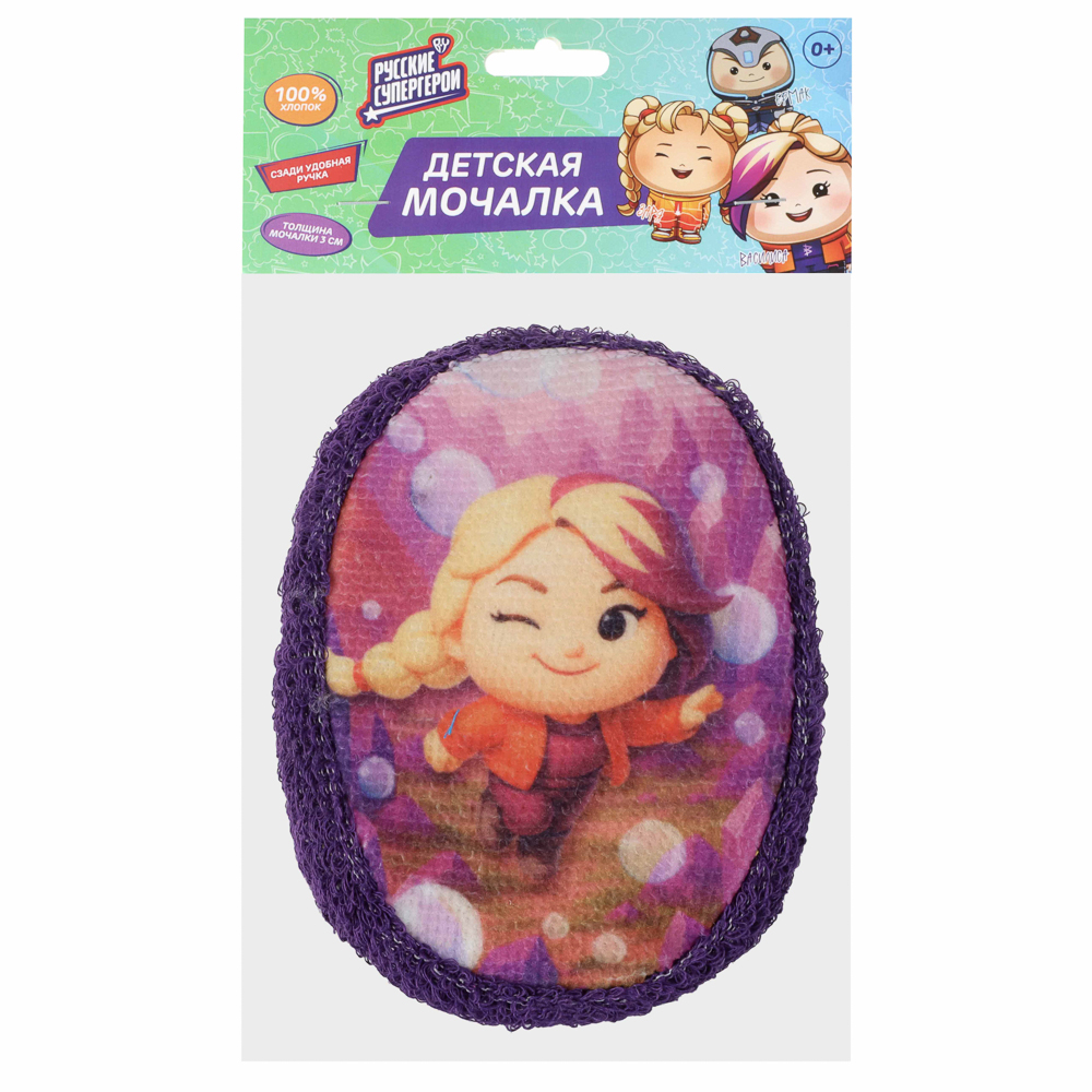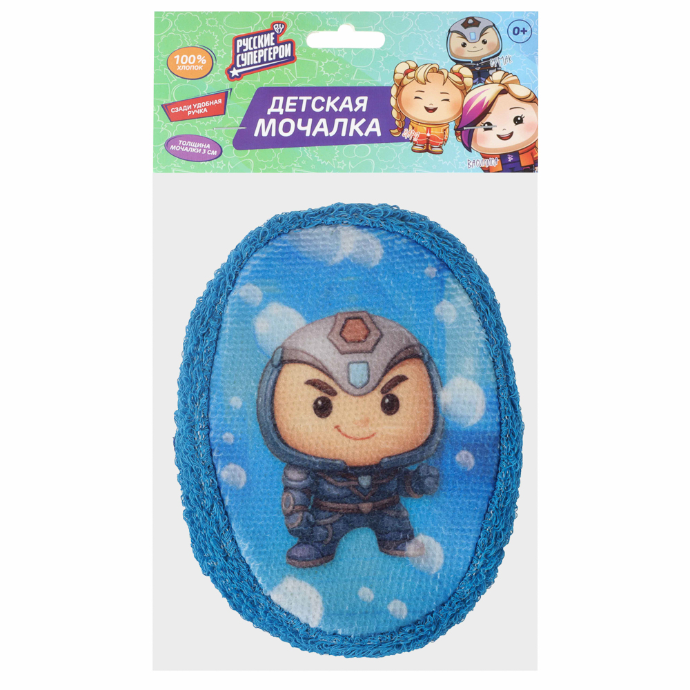 Мочалка-губка детская Русские супер герои, размер 13x10x3см, пенополиуретан, 100% хлопок, 0+