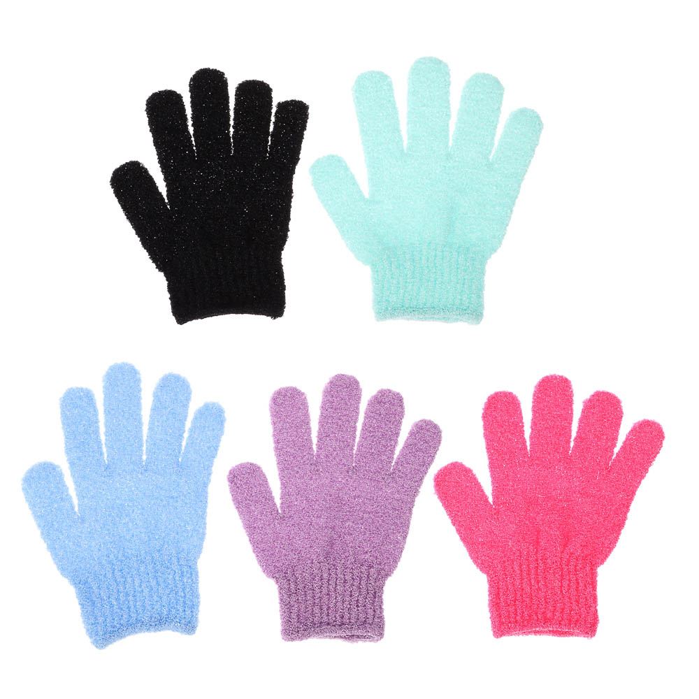 ЮL Мочалка перчатка с отшелушивающим эффектом, полиэстер, 18см, 5 цветов, МС24-06