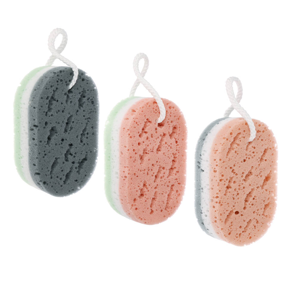 ЮL Мочалка губка поролоновая наборная сэндвич с подвесом, полиуретан, 15,5х9,5х5см, 3 цвета, МС24-01