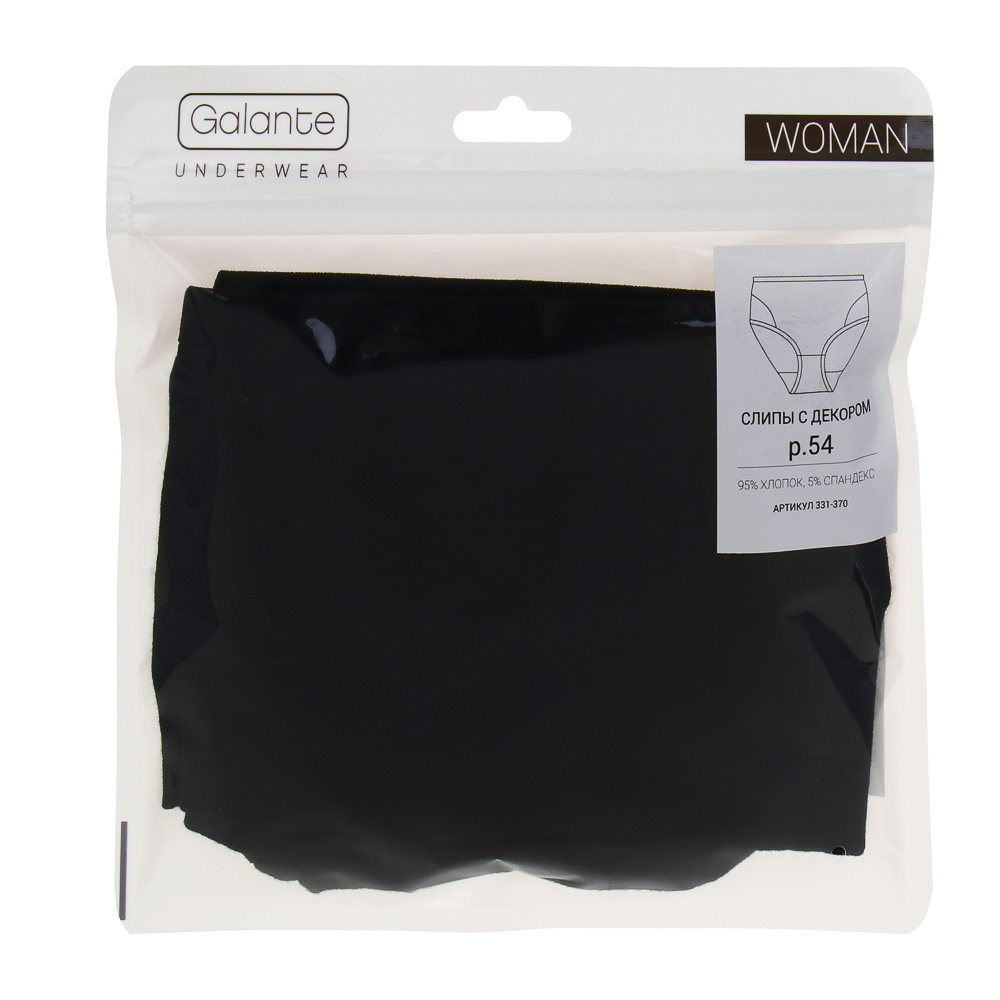 GALANTE Трусы женские макси с декором, р.54, 95%хлопок, 5%спандекс, черный, НБ25-15