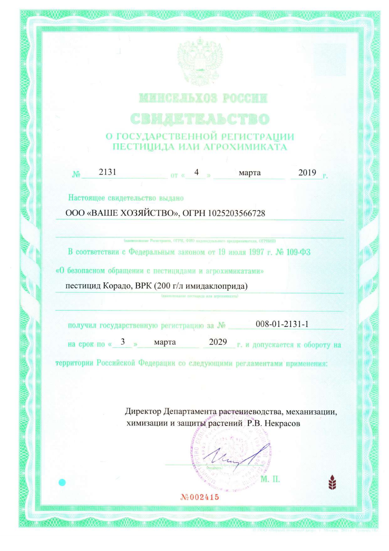 3 (умеренно опасные вещества). Класс опасности для пчел — 1 (высокоопасное) |