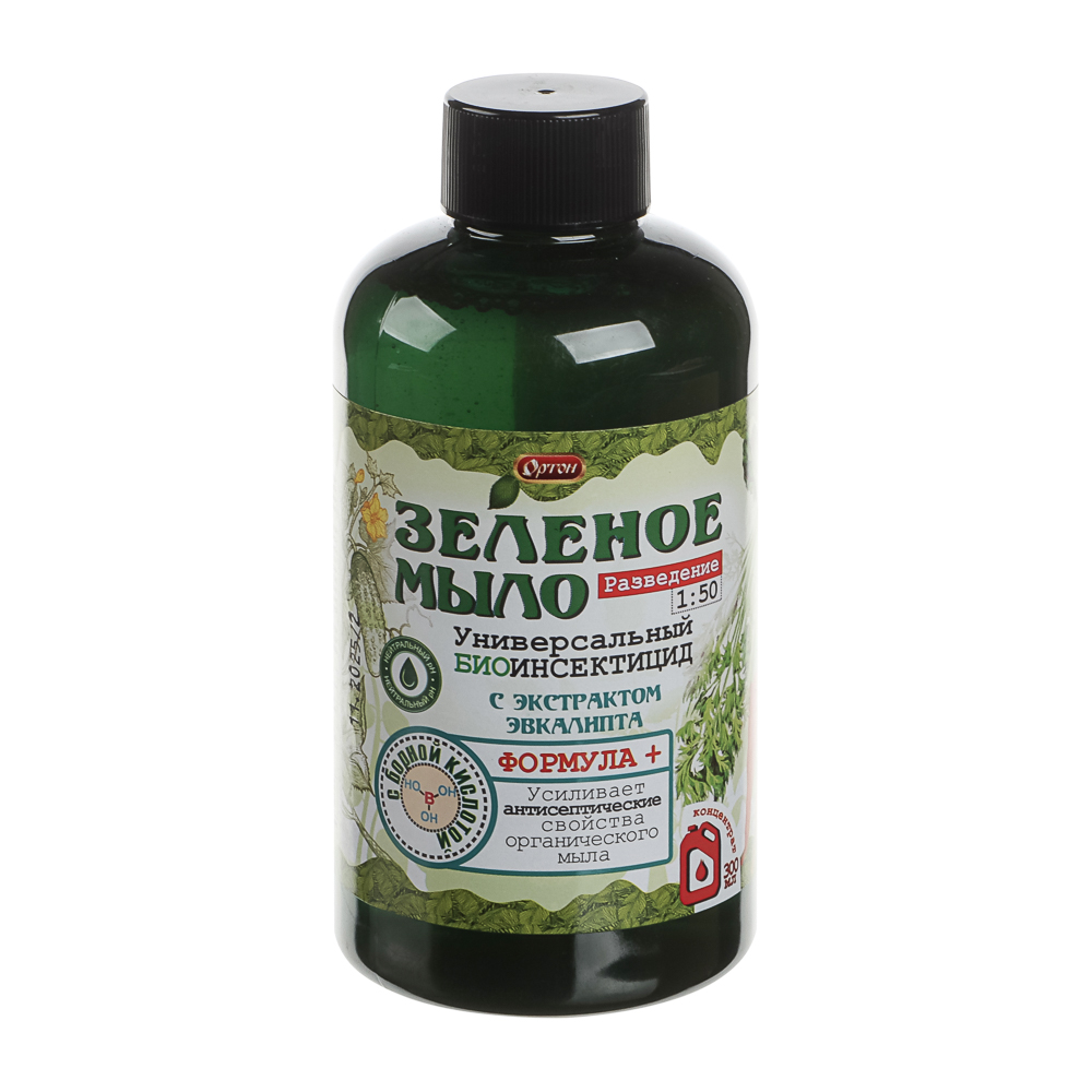 Обволакивает насекомое плёнкой, вызывая гибель через нарушение газообмена; флавоноиды, гидроксикоричные кислоты, кумарины в составе экстракта эвкалипта стимулируют рост и помогают бороться с заболеваниями растений; борная кислота в составе усиливает антисептические свойства мыла; безопасно для человека и окружающей среды |