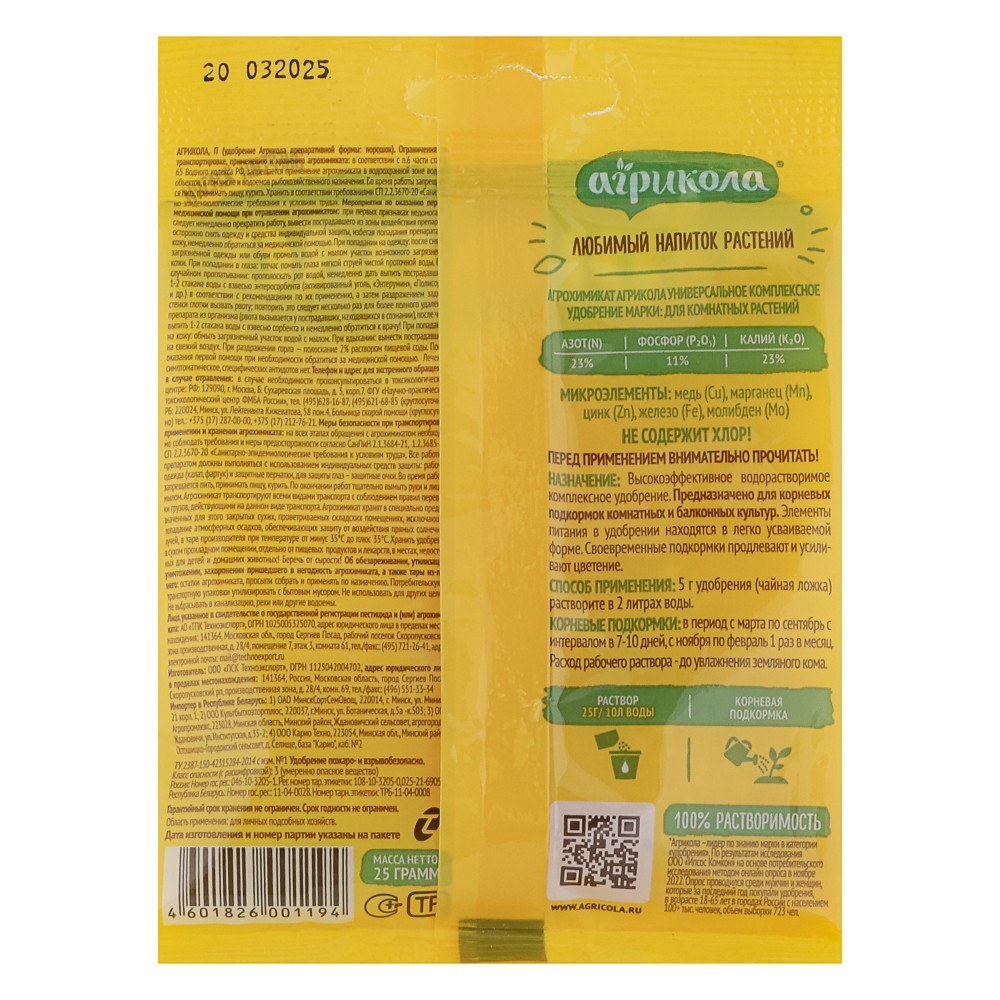 Удобрение «Агрикола» для комнатных растений помогает поддерживать их здоровый внешний вид и активный рост. Оно способствует насыщенному цвету листьев, укреплению растений и созданию комфортных условий для их развития. Подходит для регулярного ухода, делая домашнюю зелень более ухоженной и радующей глаз. Отличный выбор для тех, кто хочет, чтобы комнатные растения выглядели красиво и чувствовали себя хорошо.