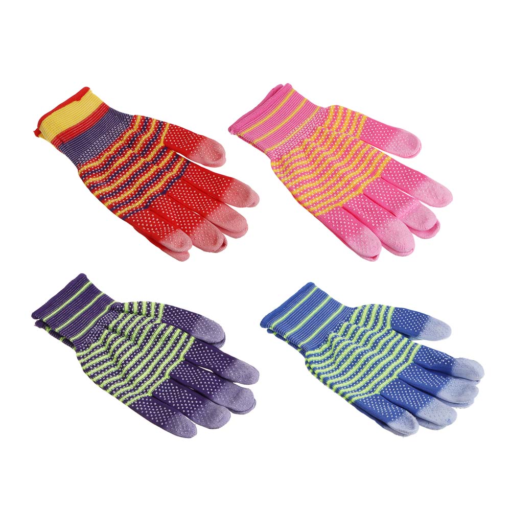 INBLOOM Перчатки садовые полиуретан.облив пальцев, ПВХ точки,р.8, 22см, полиэстер, 22г, разноцветные