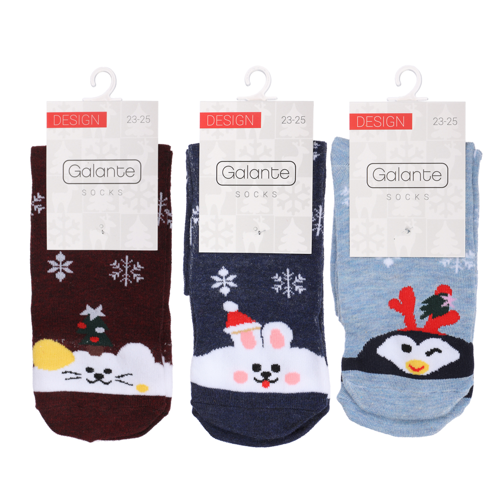 GALANTE Носки новогодние, р.23-25, 70% полиэстер, 30% хлопок, 5 дизайнов