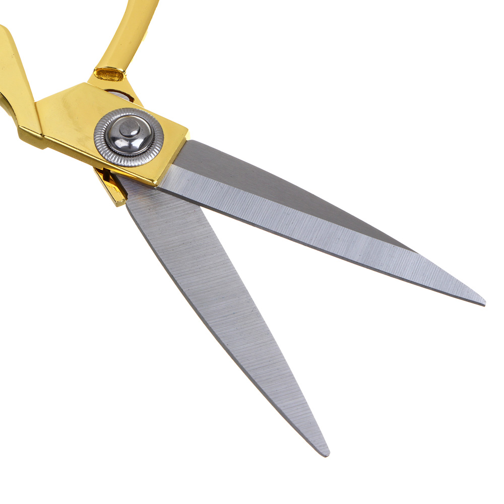 Ножницы портновские GALANTE 20,4 см, цвет золотой. Раскрой тканей требует особого подхода – прежде всего швея должна обзавестись удобными принадлежностями для своей работы. Профессиональные закройные ножницы позаботятся об удобном и аккуратном разрезании ткани и станут вашими верными помощниками в процессе шитья. Во время использования этих ножниц можно добиться минимального поднятия ткани, что обеспечивает ровный срез. Кроме того кольца ножниц различаются по размеру – такая особенность в конструкции позволяет не напрягать запястье по время раскроя.