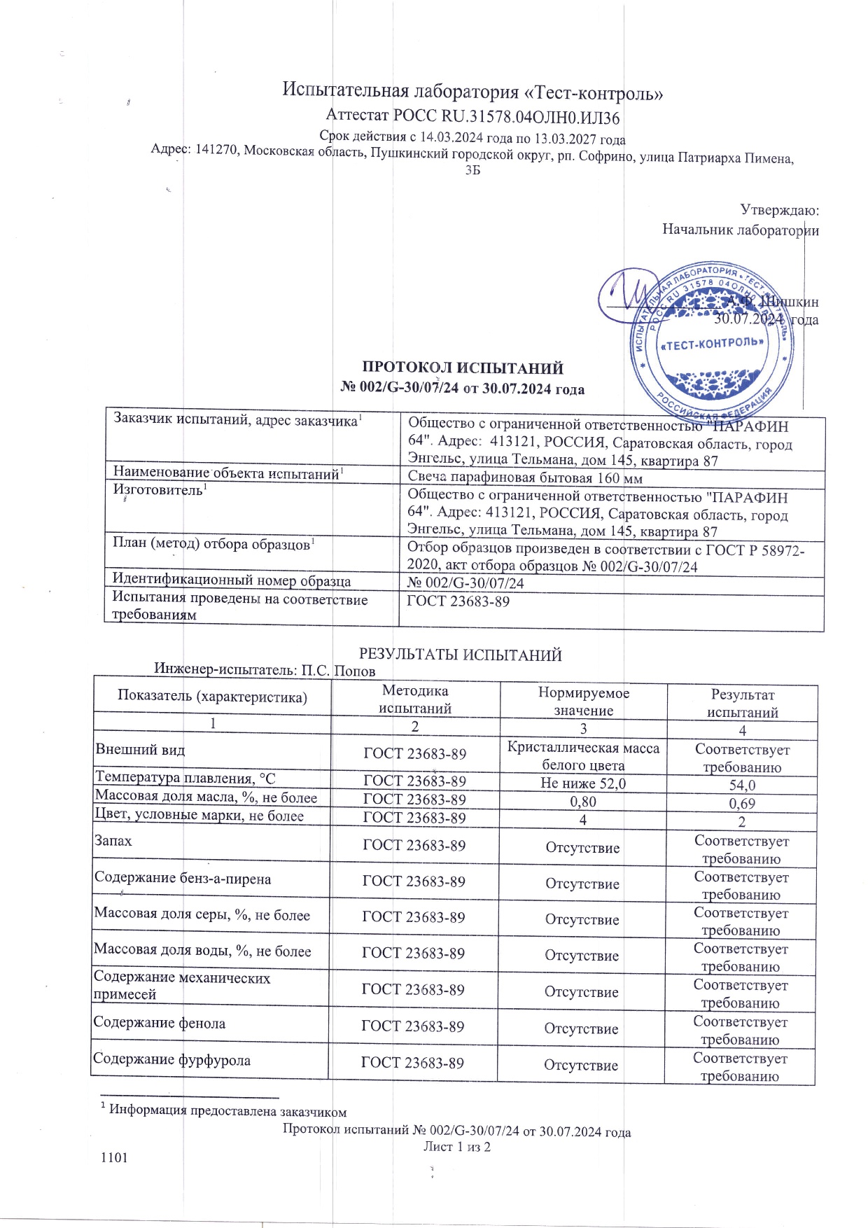 Свеча хозяйственная 15,5см, d2см, 39гр, время горения 5 часов и более, № 45