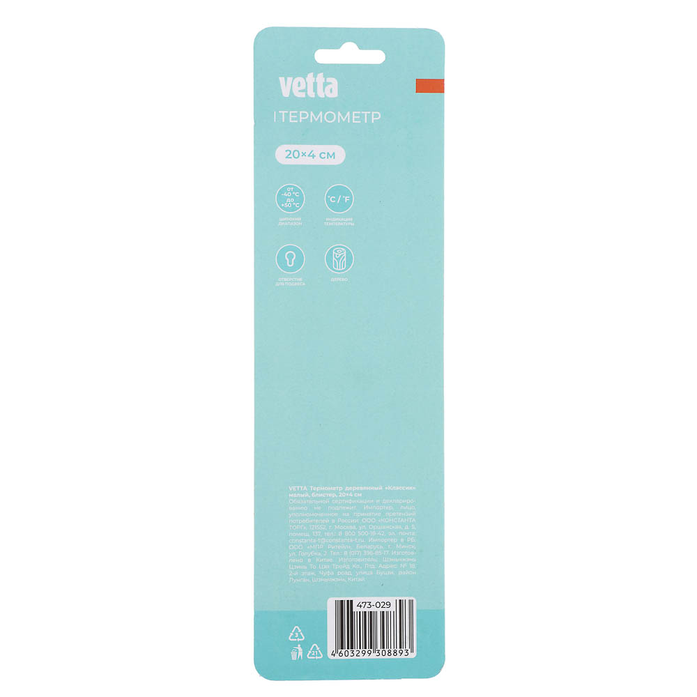 VETTA Термометр деревянный Классик малый, блистер, 20х4см
