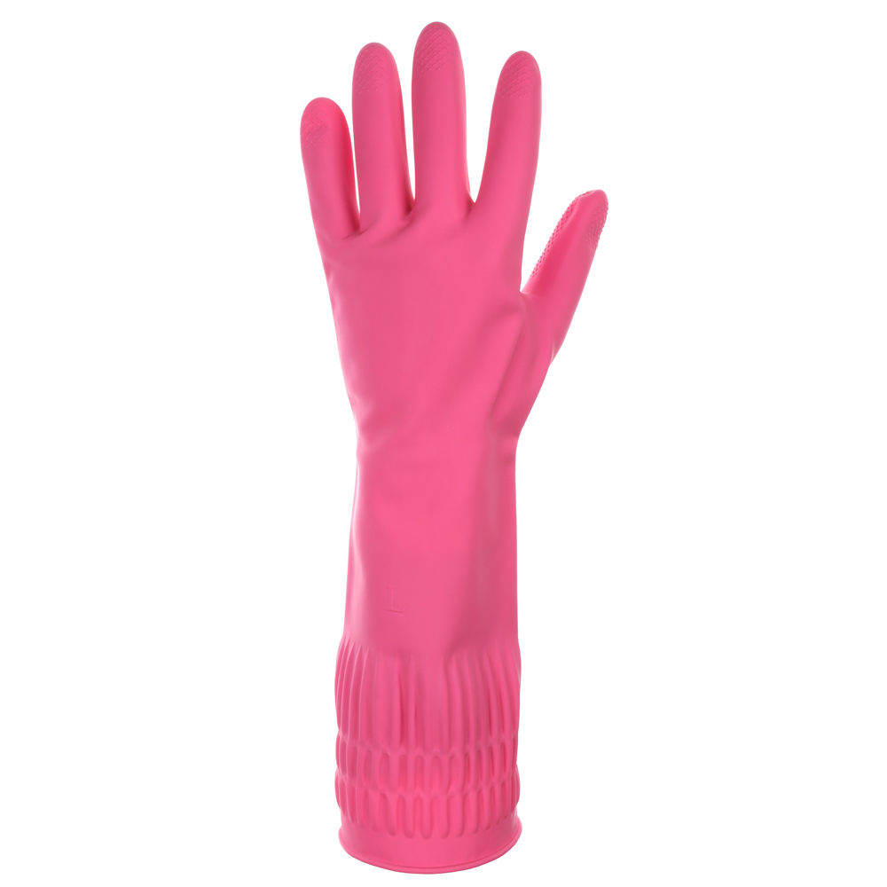 Перчатки с манжетой VETTA из прочного латекса предназначены для надёжной защиты рук при выполнении бытовых и хозяйственных работ. Удлинённая манжета длиной 38 см обеспечивает дополнительную защиту запястий и предплечий от воды и моющих средств. Эластичный материал плотно облегает руку, создавая комфорт и удобство при использовании. Перчатки хорошо устойчивы к влаге и загрязнениям, подходят для многоразового применения, а нежный розовый цвет придаёт им аккуратный и привлекательный внешний вид.