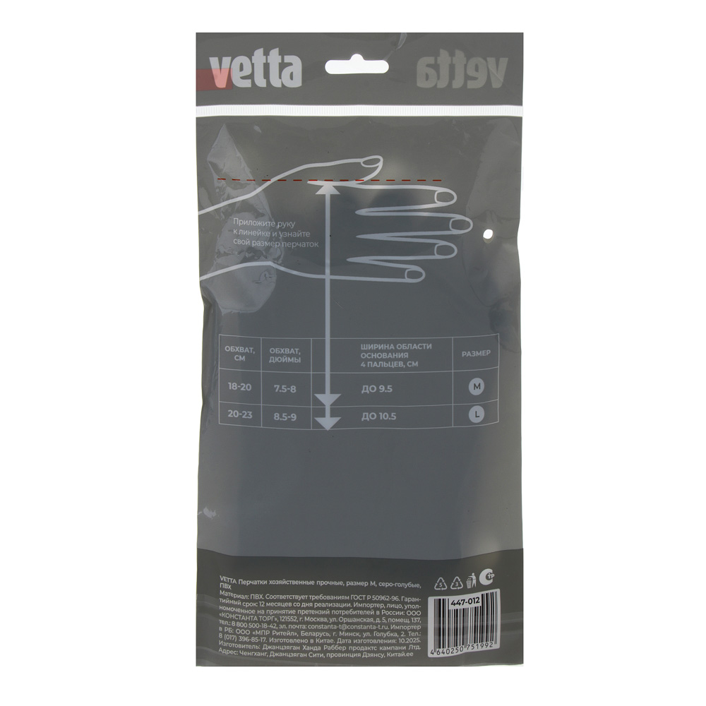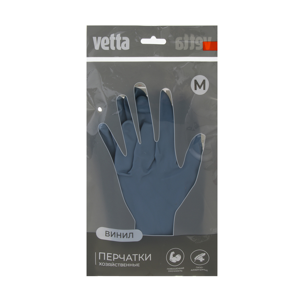 VETTA Перчатки хозяйственные, прочные, размер M, серо-голубые, ПВХ