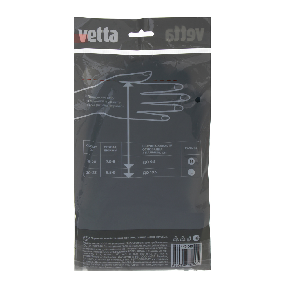 VETTA Перчатки хозяйственные, прочные, размер L, серо-голубые, ПВХ