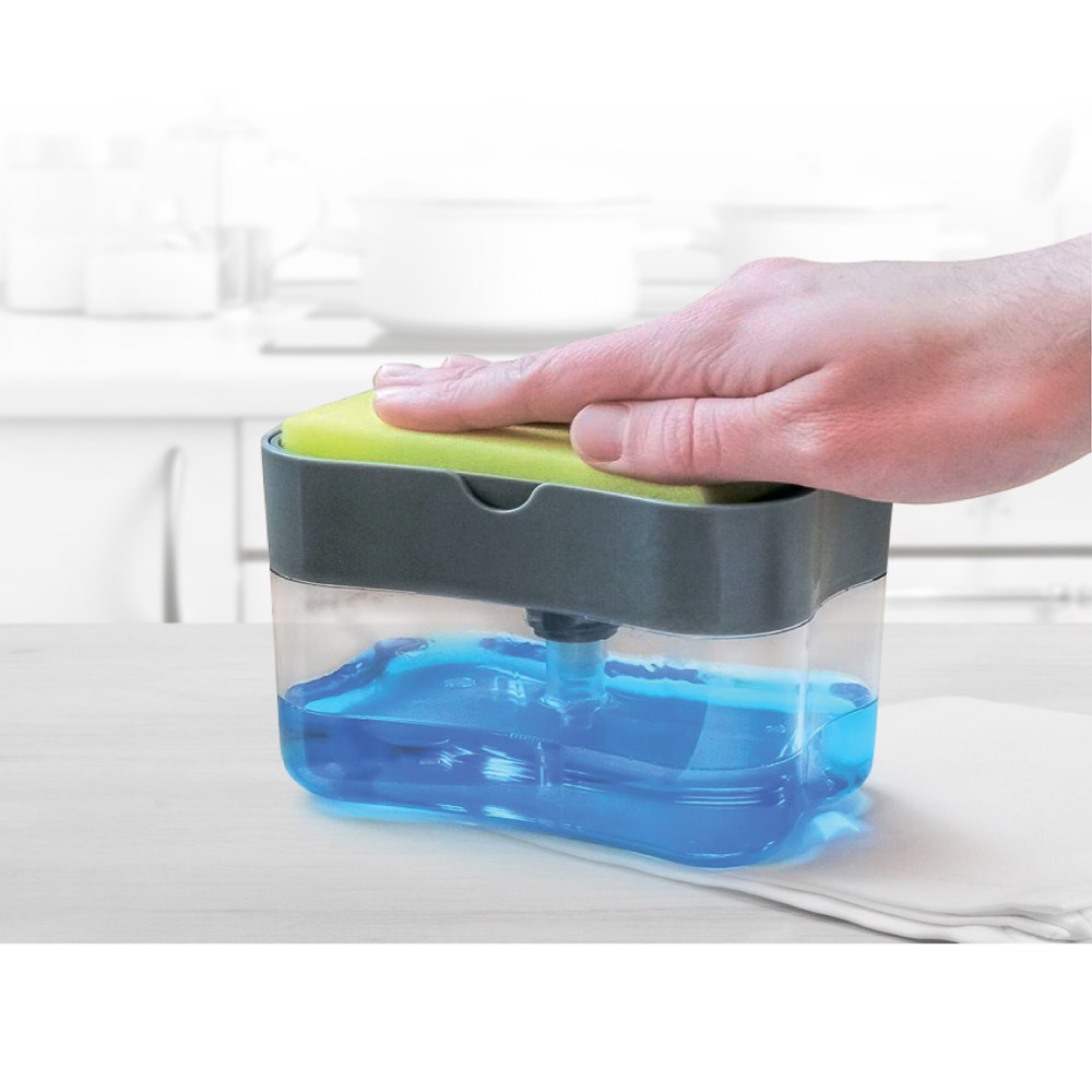 Удобный дозатор с губкой VETTA на кухню поможет сэкономить моющее средство. Теперь Вы не будете думать о том, много или мало добавили жидкого мыла на губку - дозатор выделяет фиксированную дозу. Устройство не занимает много места на кухне - данный органайзер держит саму губку и впишется в любой интерьер. Теперь для того, чтобы добавить моющего средства на губку, достаточно несколько раз нажать на помпу.