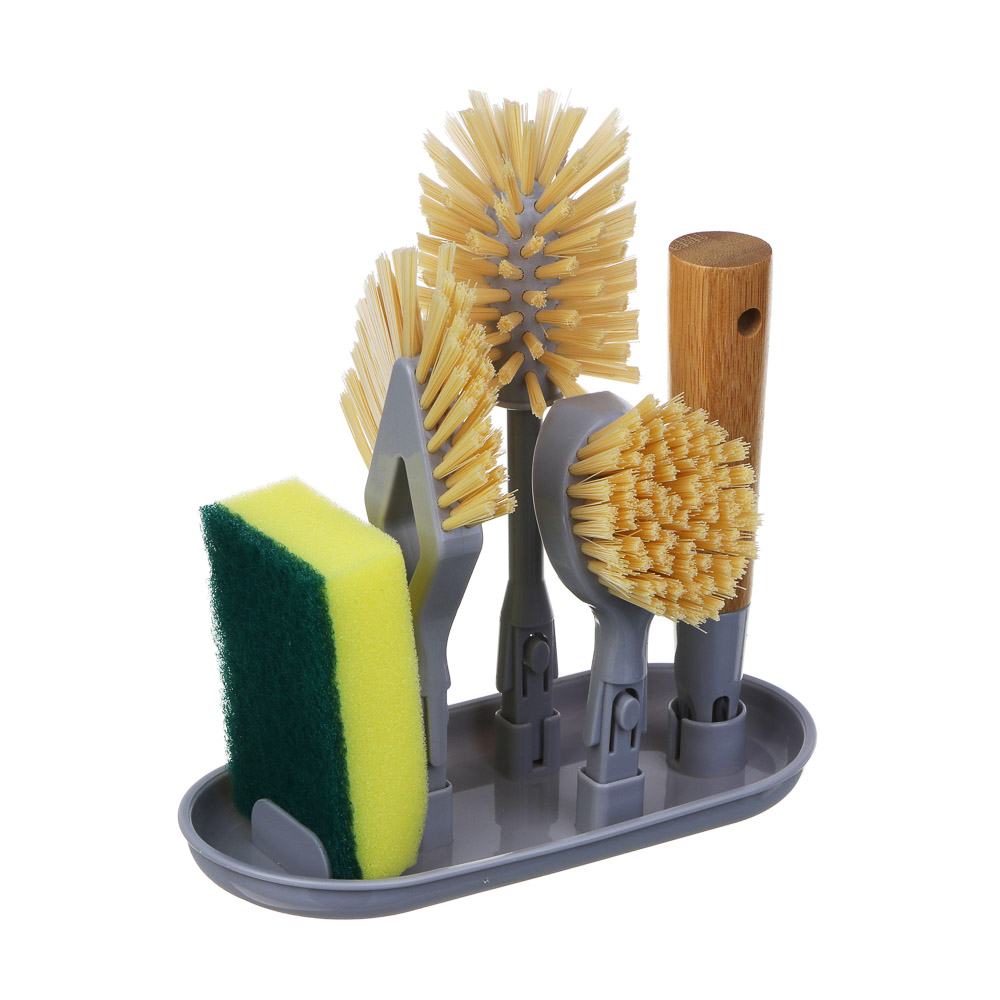 Набор щёток VETTA со сменными насадками идеально подходит для уборки на кухне и в ванной комнате! Кухонный органайзер - это новое инновационное решение, способствующее сохранить чистоту, а также сэкономить место. Набор кухонных аксессуаров имеет в комплекте щетки, губку и подставку. Щетки для чистки и уборки - отличный аксессуар в доме, который хорошо подходит для чистки плиты, ванны, раковины, стен, стола, гриля, да и в прочем разных поверхностей. Бамбуковая удобная долговечная ручка, 3 сменных насадки из пластика высокого качества, которыми с уверенностью можно очистить любую грязную поверхность и быть уверенным, что корпус выдержит. Подставка предназначена для удобного размещения и хранения насадок. Все это значительно упростит чистку и уборку в вашем доме и сделает ее в радость.