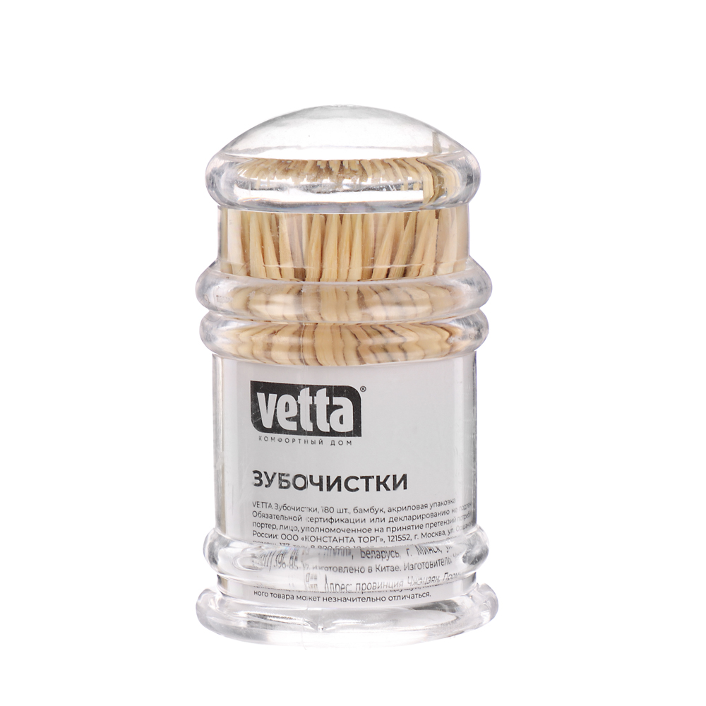 VETTA Зубочистки 180шт, бамбук, акриловая упаковка