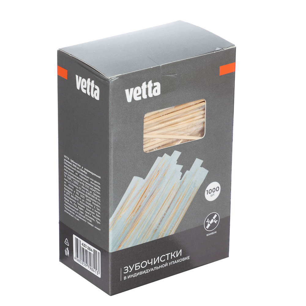 VETTA Зубочистки, в индивидуальной упаковке, 1000шт, бамбук